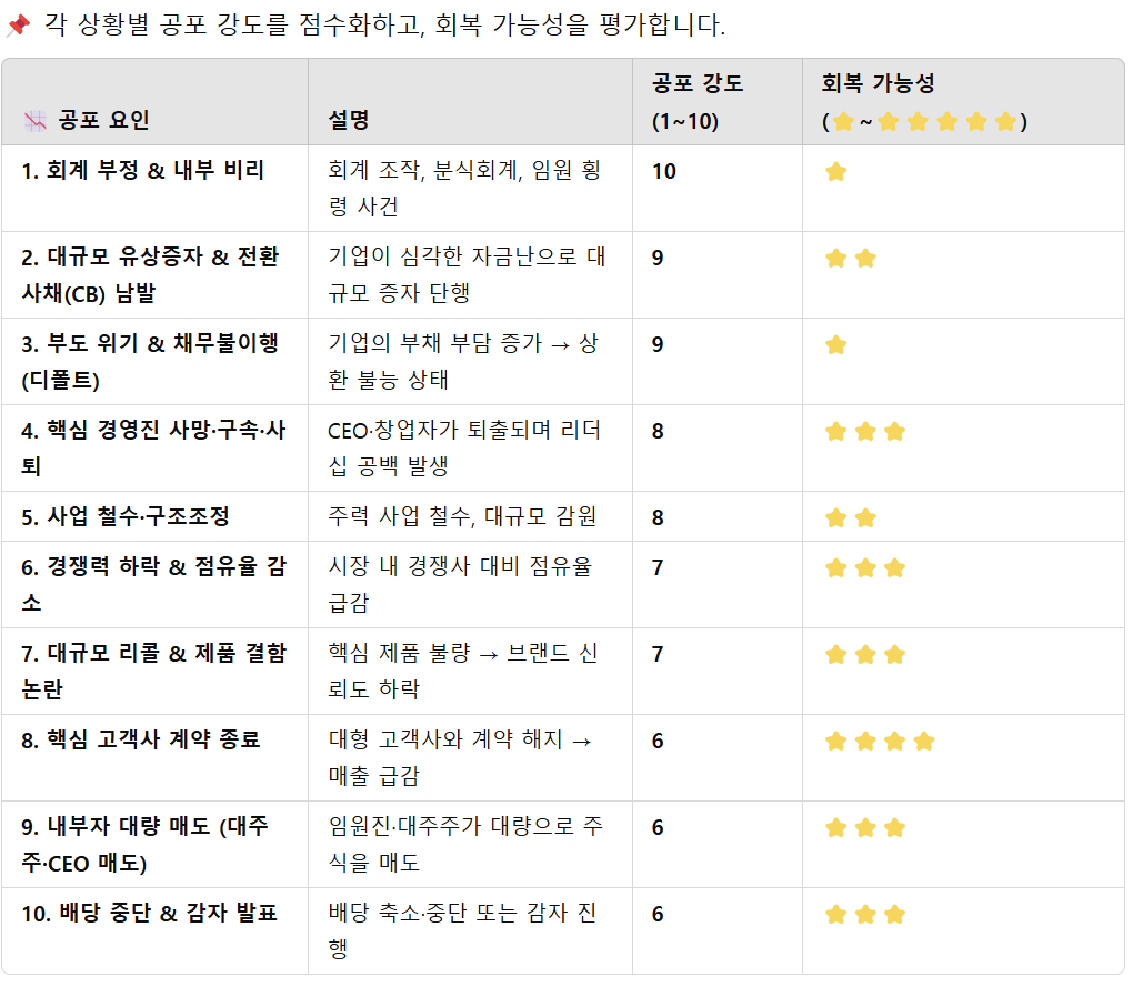 이런 상황에서는 투자자들의 신뢰가 무너지고, 주가는 단기간에 폭락할 수 있습니다.