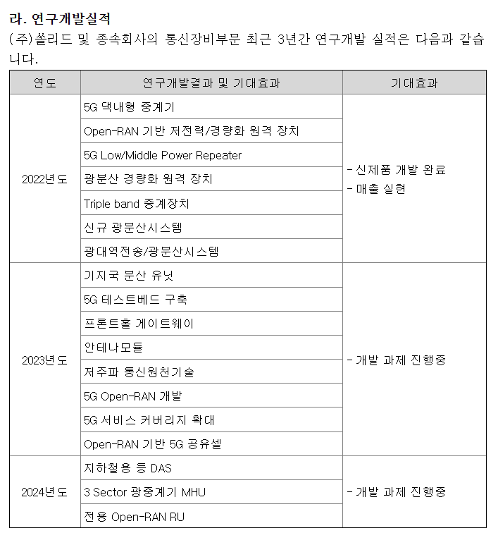 - 미래 성장 전략: 당사는 O-RAN 기술에 대한 연구개발을 지속하고 있으며, 시장 선도자로 자리매김하기 위한 전략을 추진 중입니다.