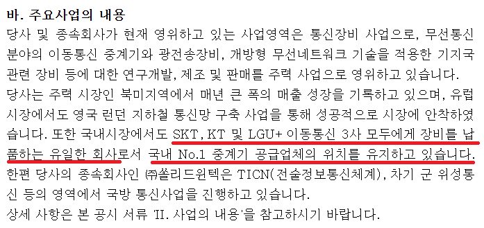 쏠리드라는 기업의 주요 사업 내용은 아래와 같습니다.