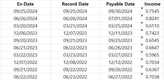 SCHD의 배당 지급일은 연 4회(3,6,9,12월) 입니다. 아래는 최근 진행했던 배당락일 및 지급일입니다.