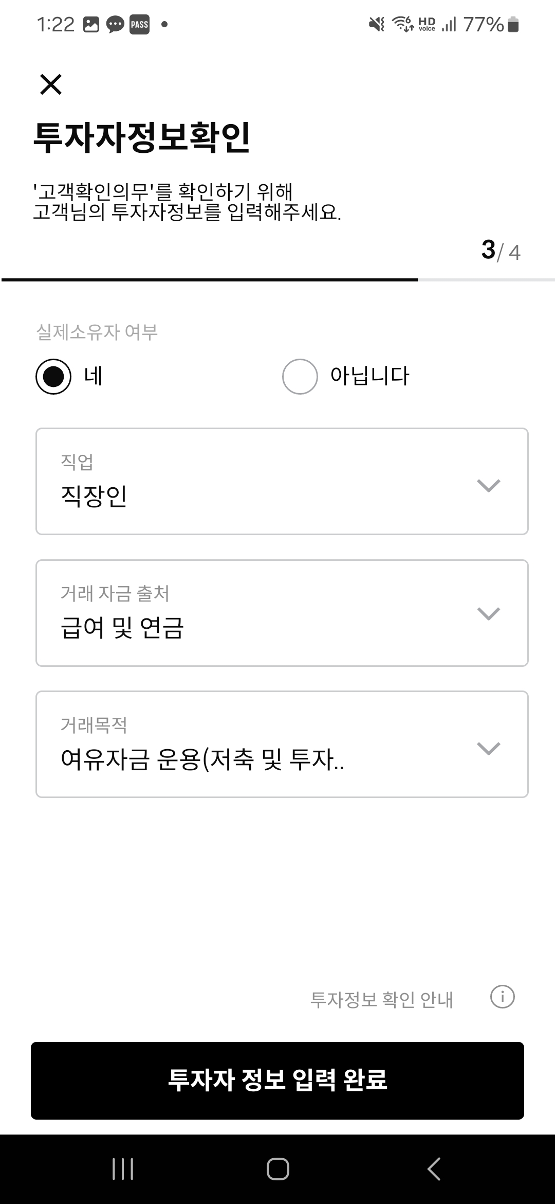 한국 투자 증권 어플을 다운로드 받은 후 계좌개설하기를 누르면 아래와 같은 화면이 나옵니다.