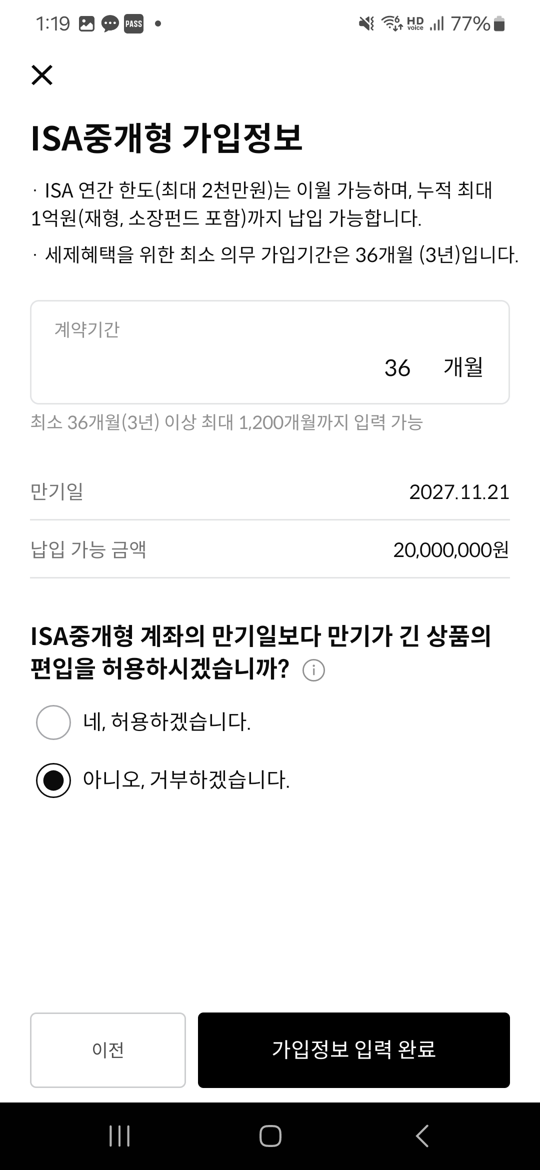 ISA 중개형 계좌 만기일보다 만기가 긴 상품 편입의 경우 지금 보니 허용하는 게 나았을 것 같네요 ㅠㅠ