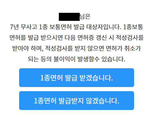 3. 그런데 들어가니 아래와 같이 1종 보통면허 발급 대상자 글이 나오네요 제가 7년 무사고 1종 보통면허 발급 대상자랍니다. 기왕 받는거 1종으로 받아보도록 하겠습니다.