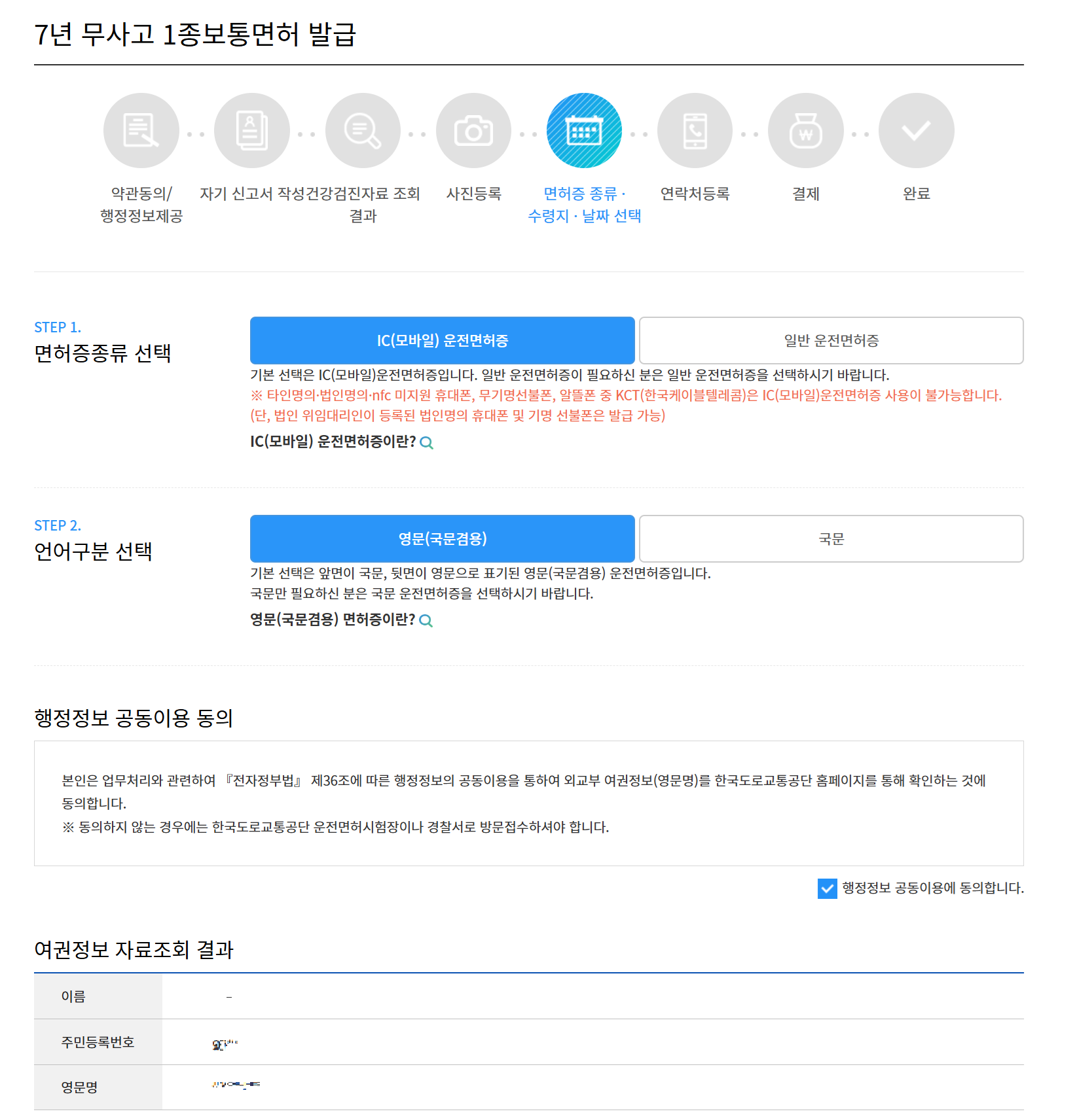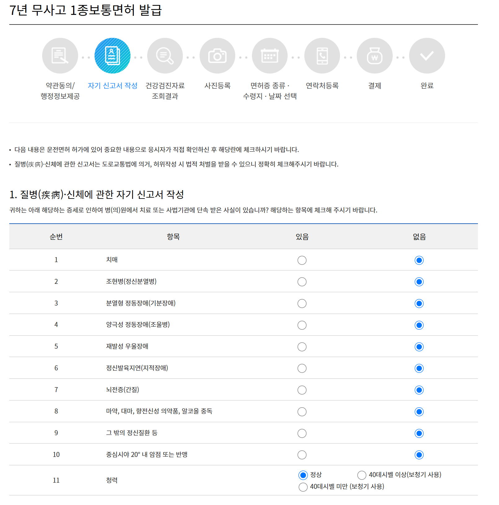 11. 여기까지 신청하게 되면 7년 무사고 1종 보통면허 발급 신청이 완료되게 됩니다.
